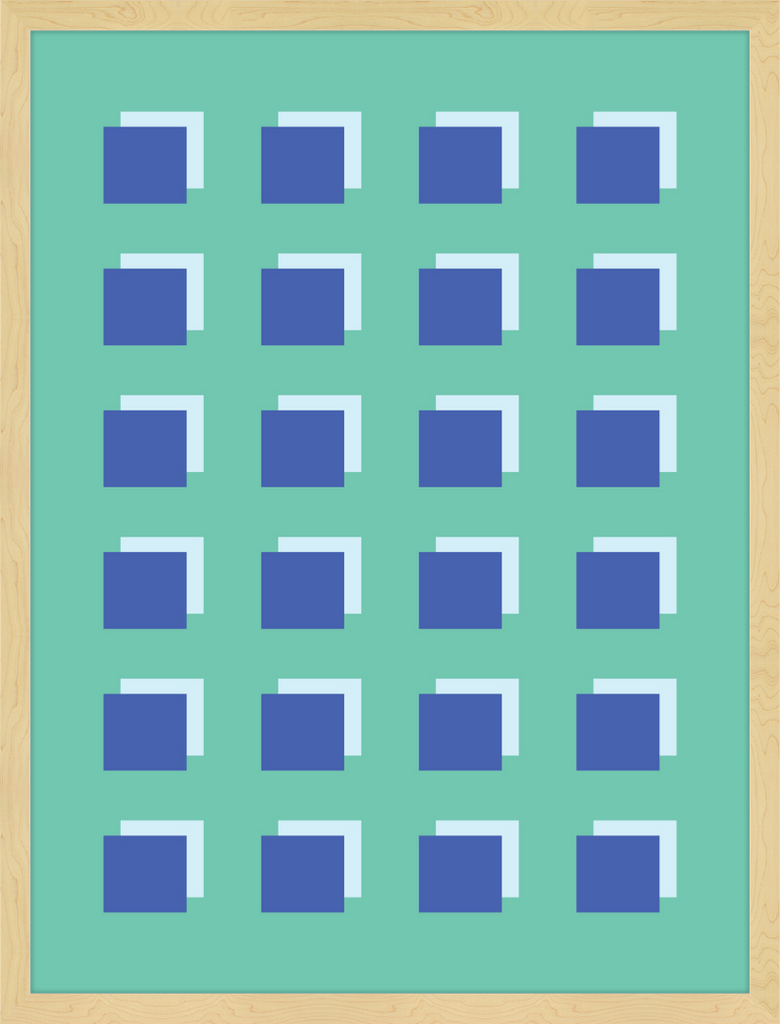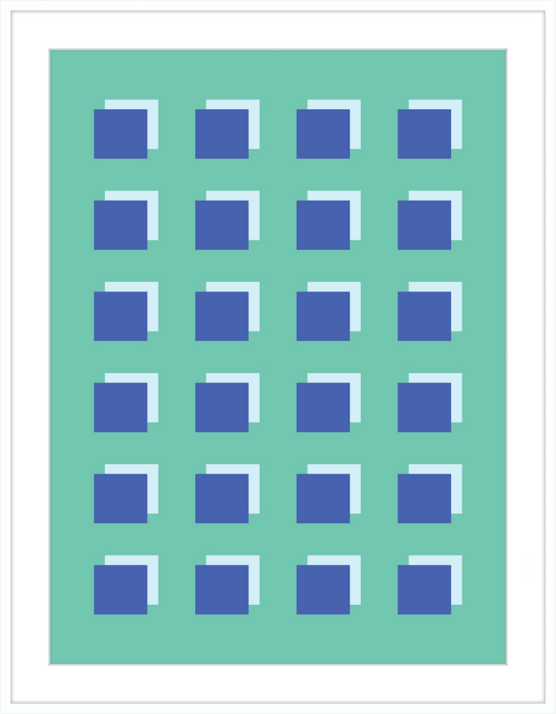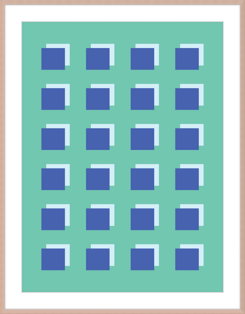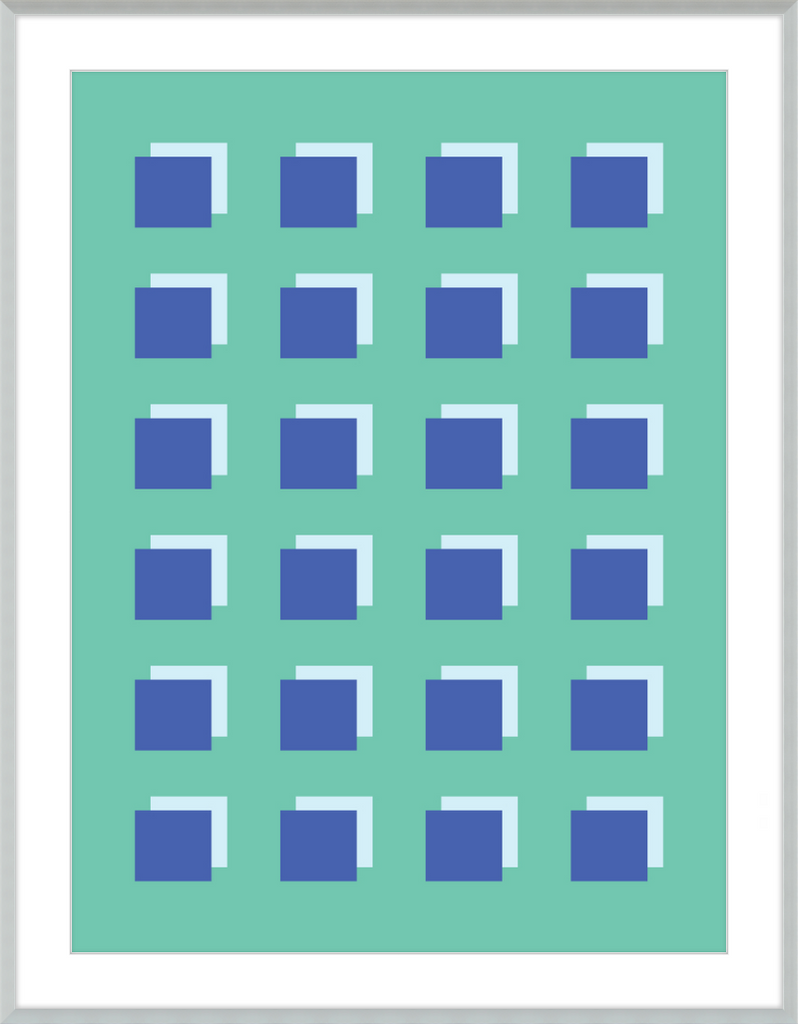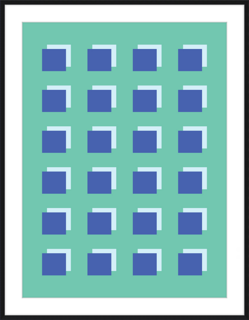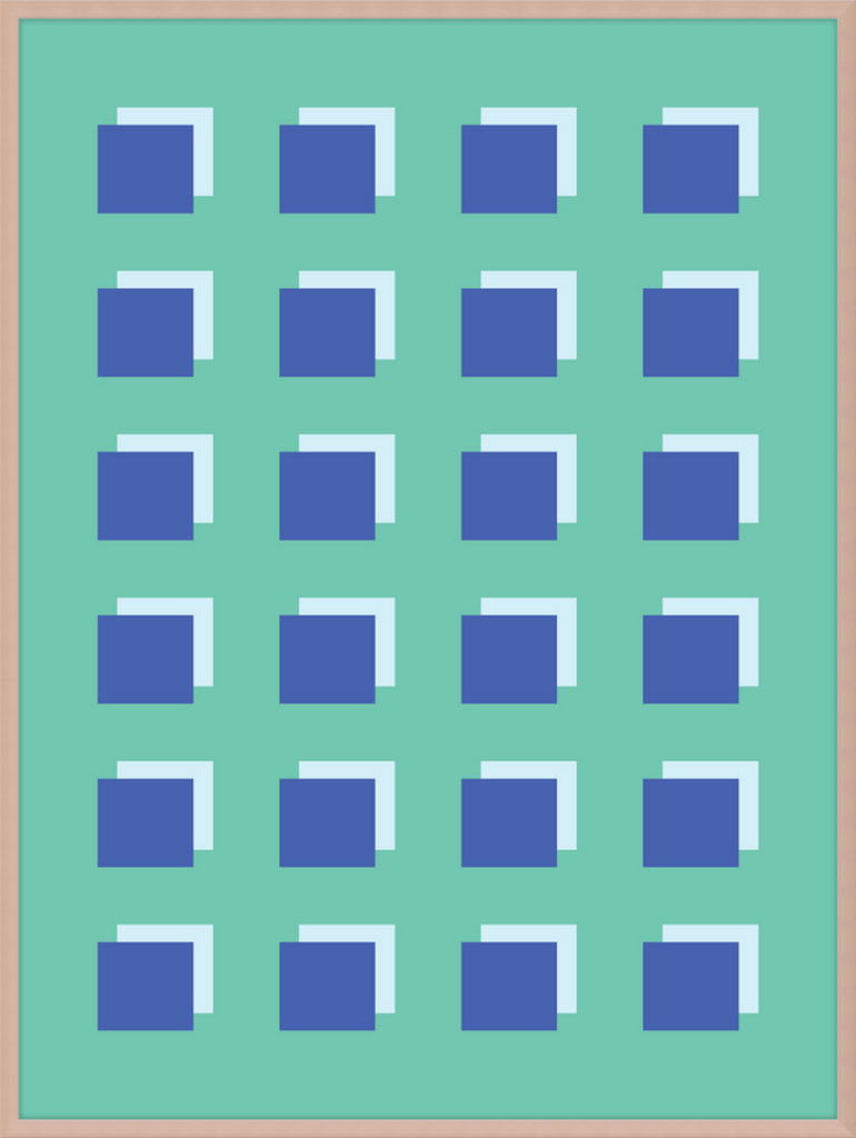The Grid Forest print is a modern work of art, combining geometric greens and blues to create a contemporary and minimalistic design. It is sure to bring luxury and sophistication to your home.