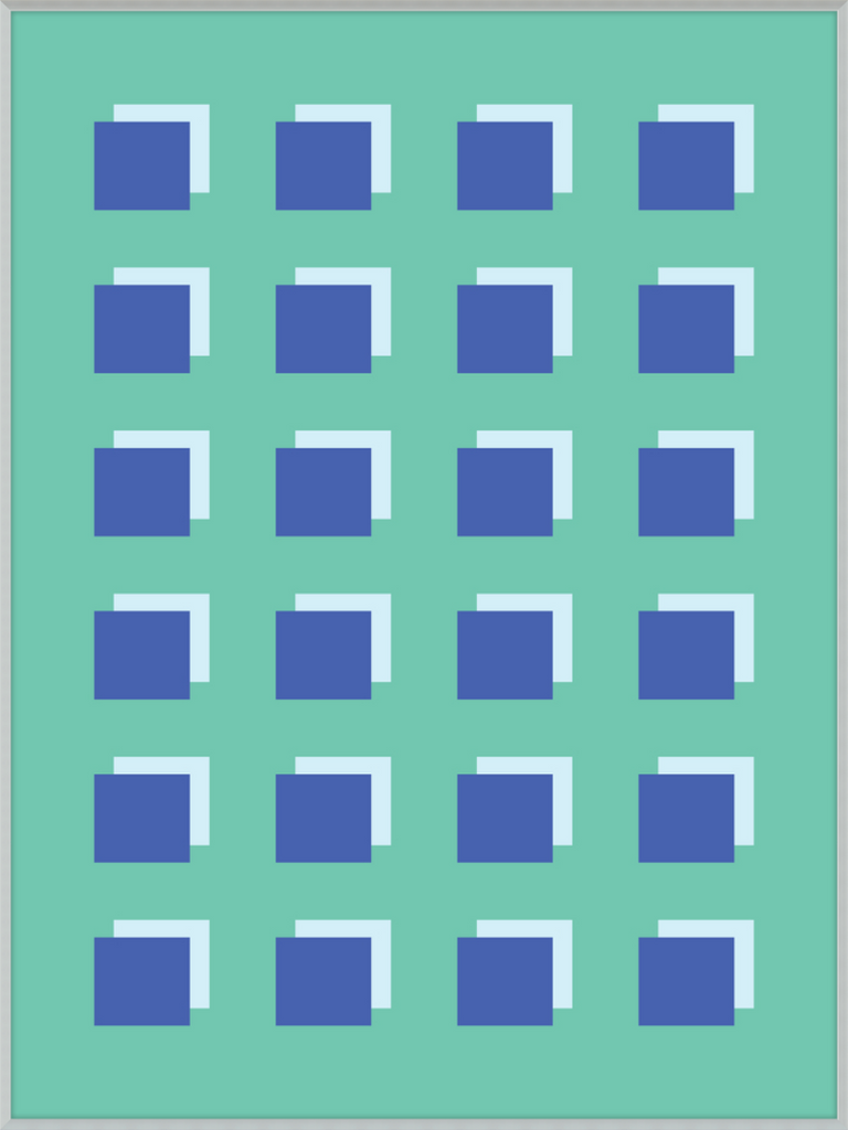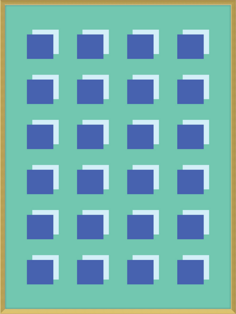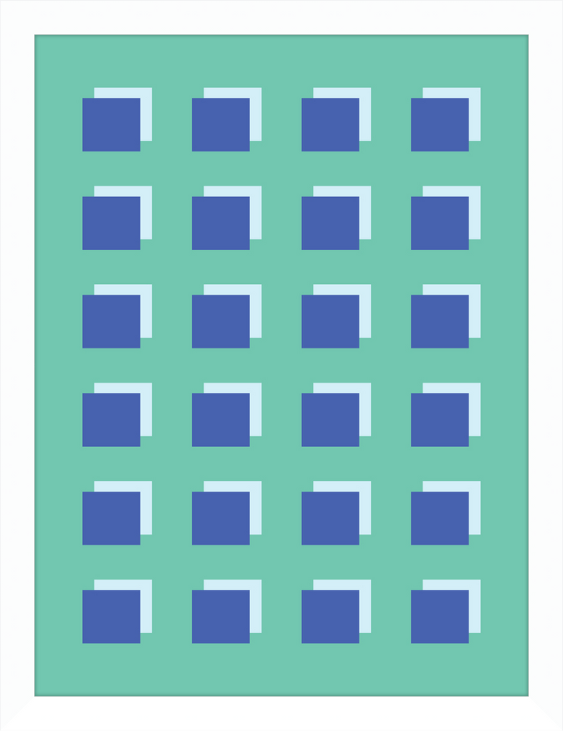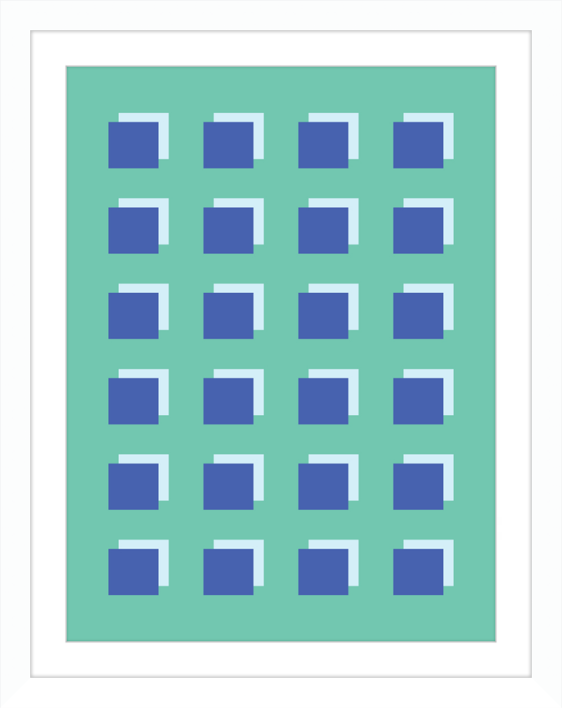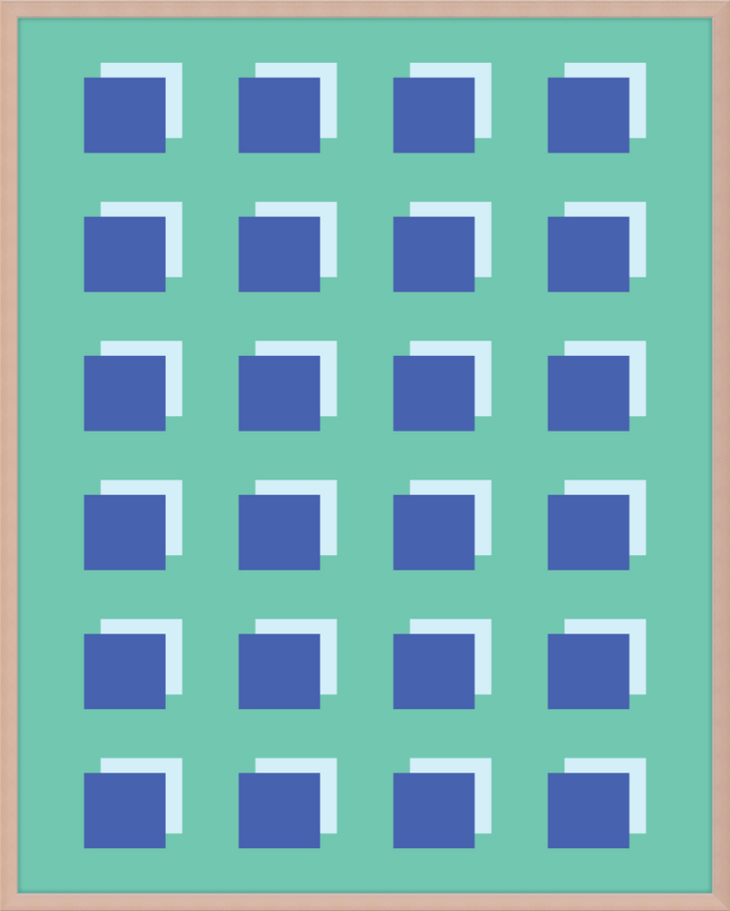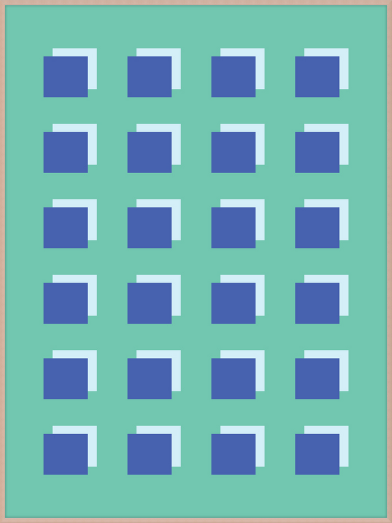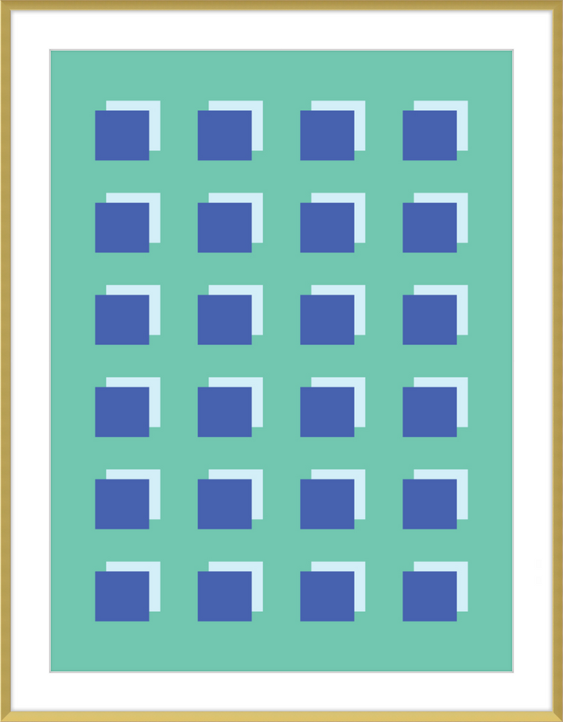 The Grid Forest print is a modern work of art, combining geometric greens and blues to create a contemporary and minimalistic design. It is sure to bring luxury and sophistication to your home.