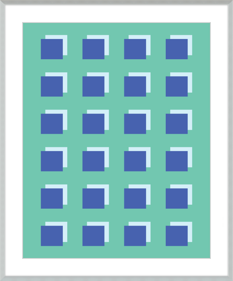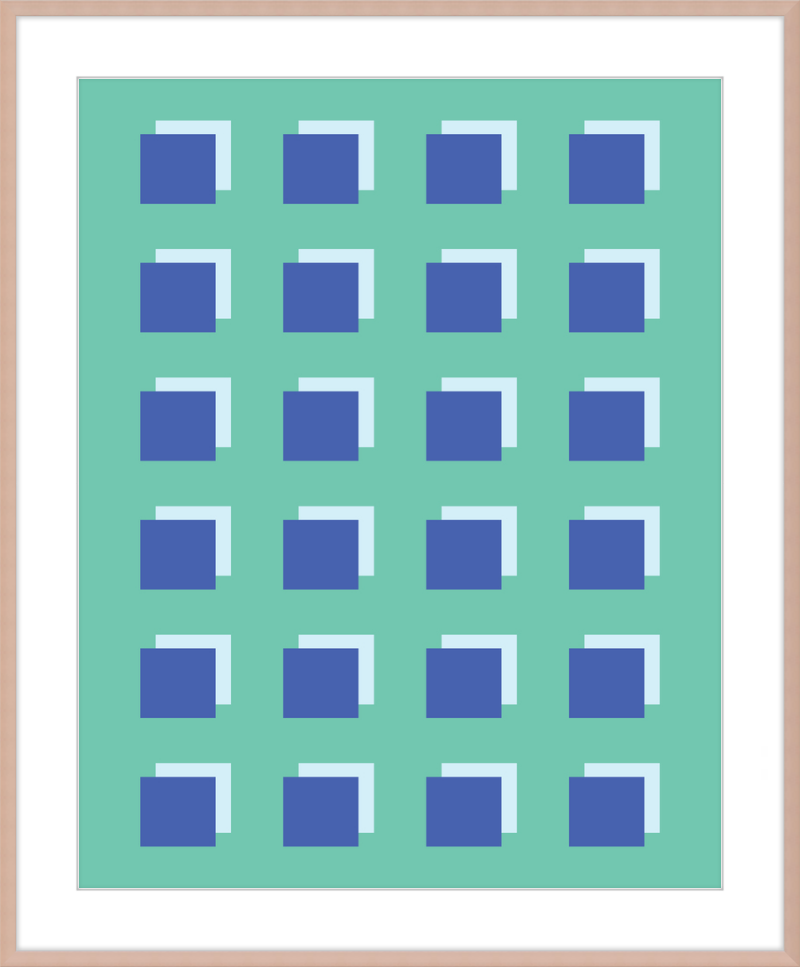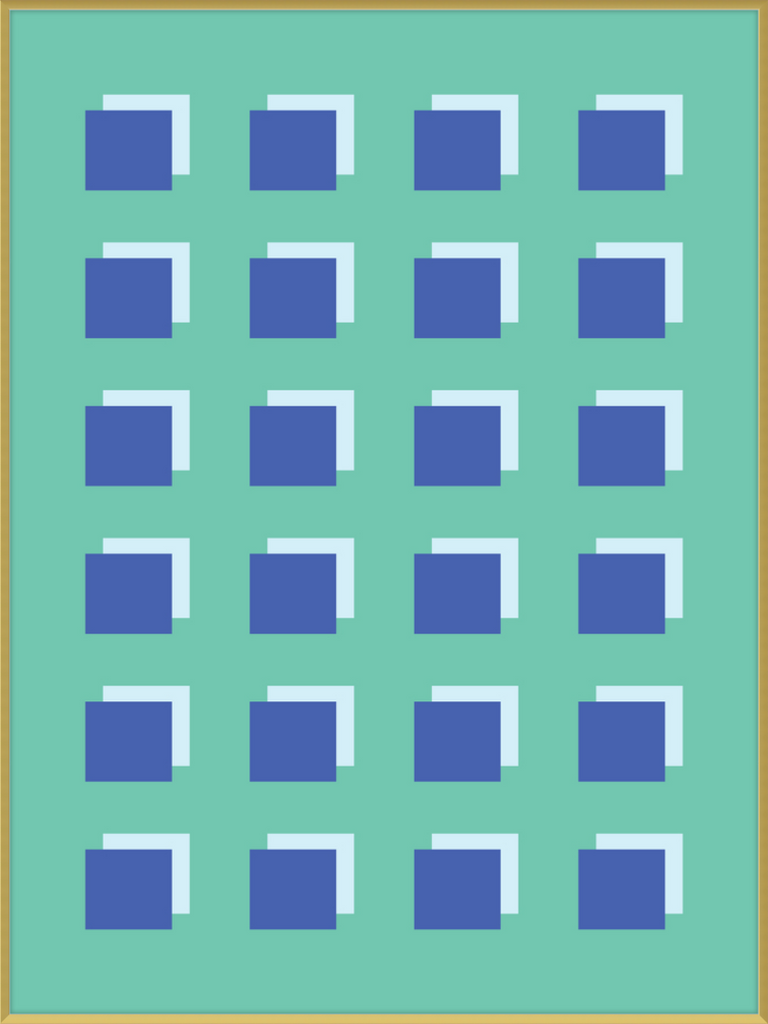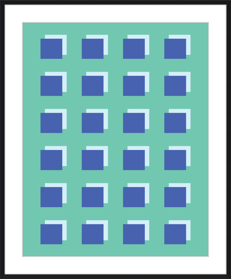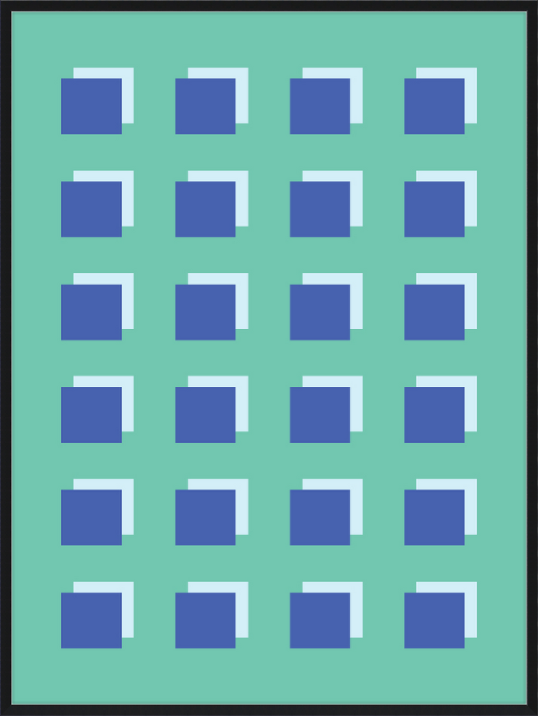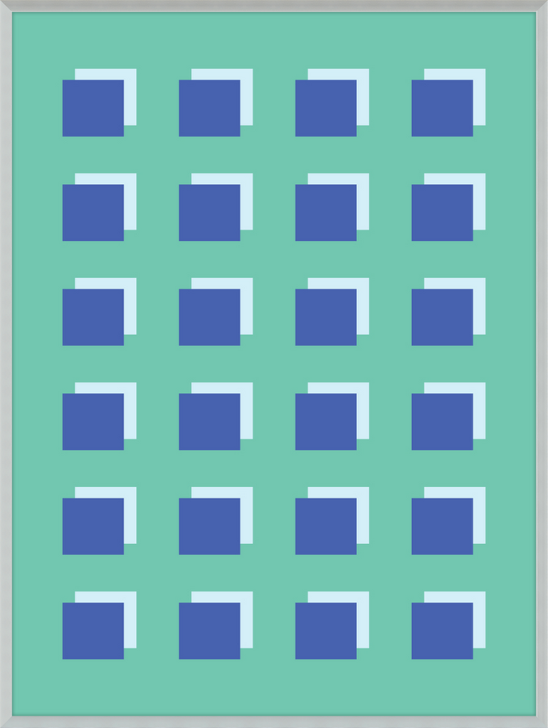 The Grid Forest print is a modern work of art, combining geometric greens and blues to create a contemporary and minimalistic design. It is sure to bring luxury and sophistication to your home.