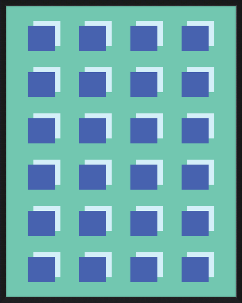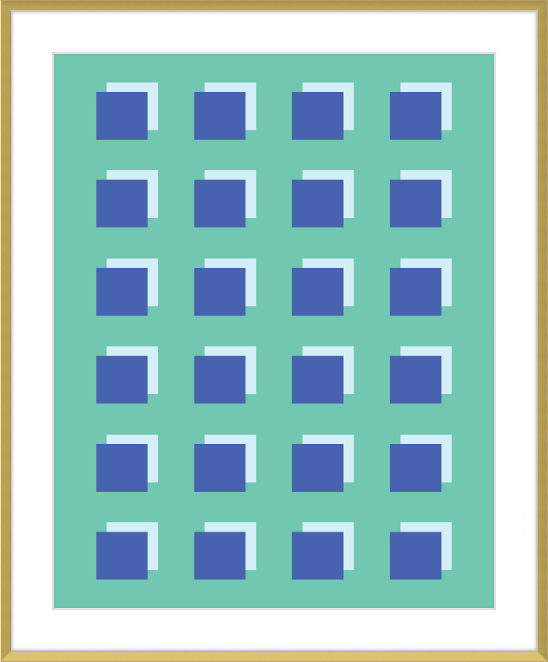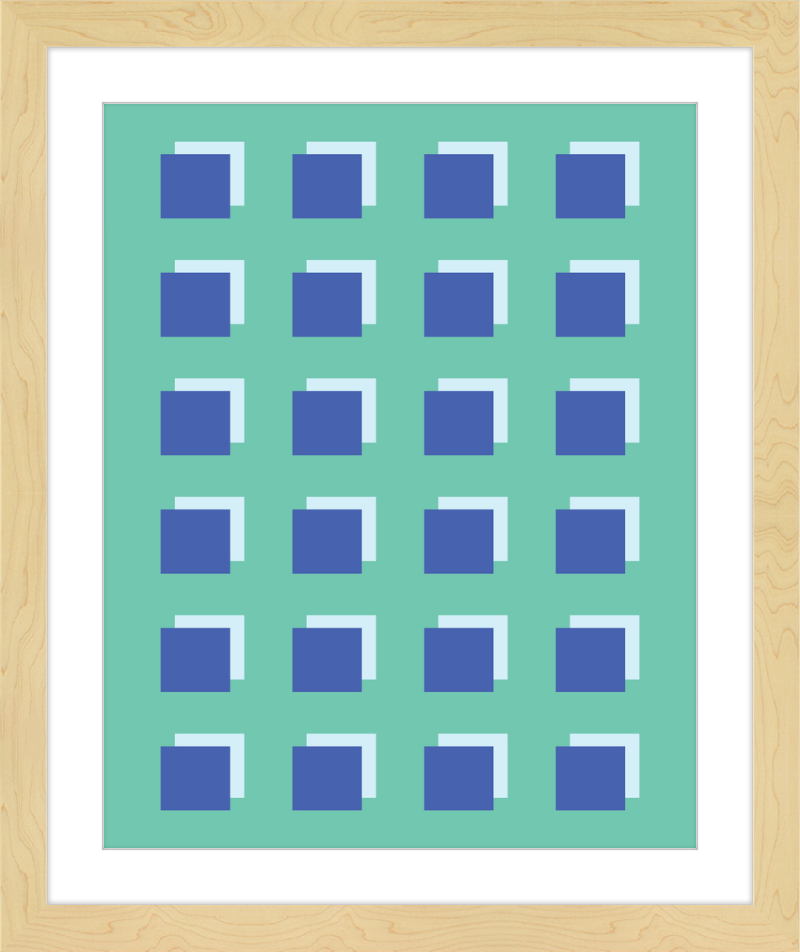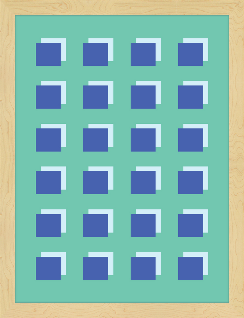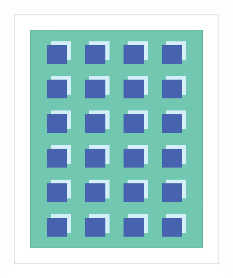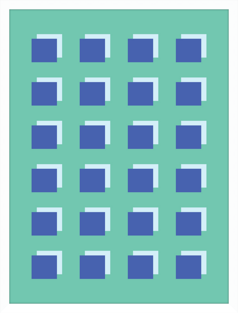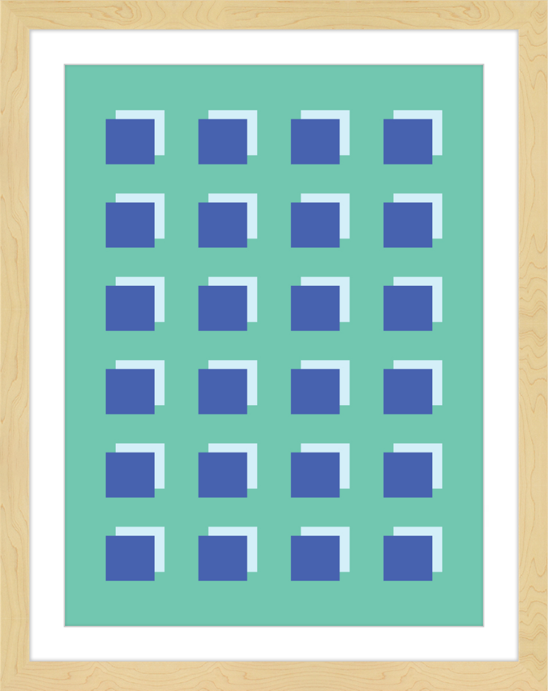 The Grid Forest print is a modern work of art, combining geometric greens and blues to create a contemporary and minimalistic design. It is sure to bring luxury and sophistication to your home.
