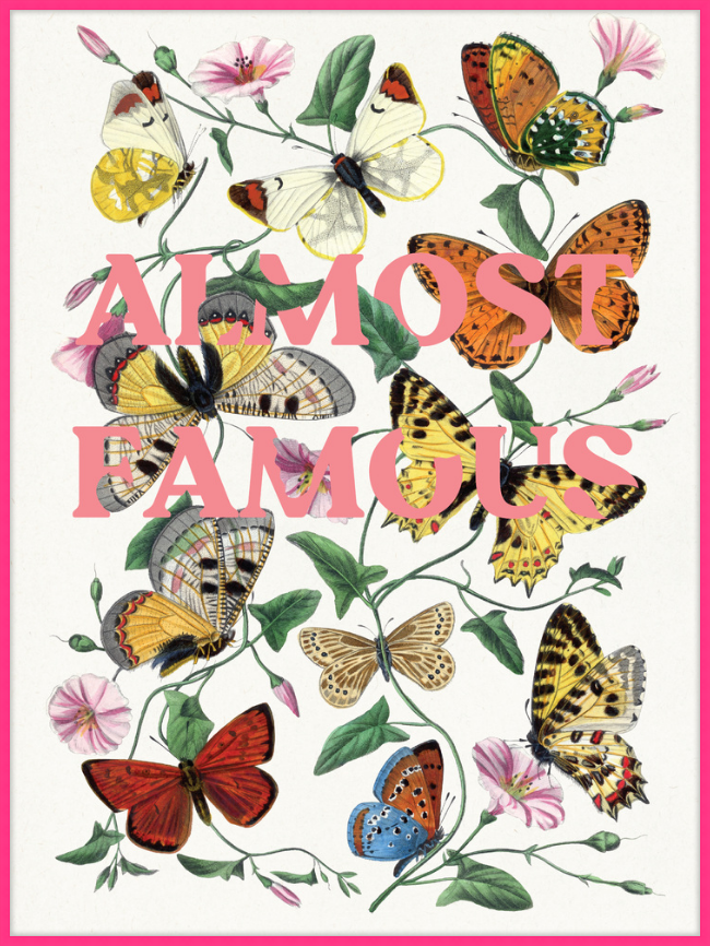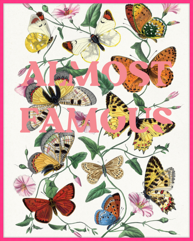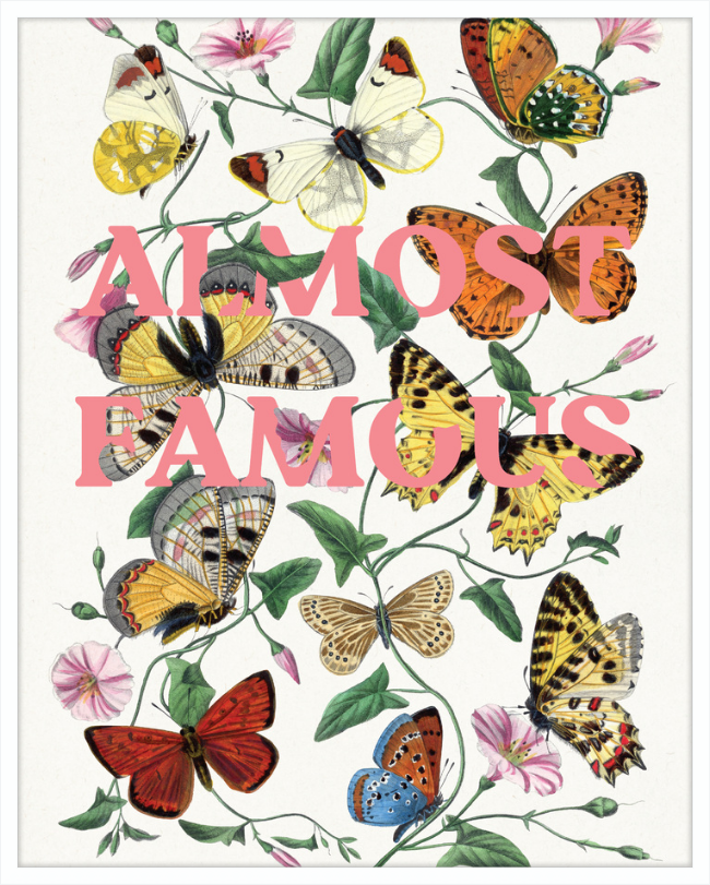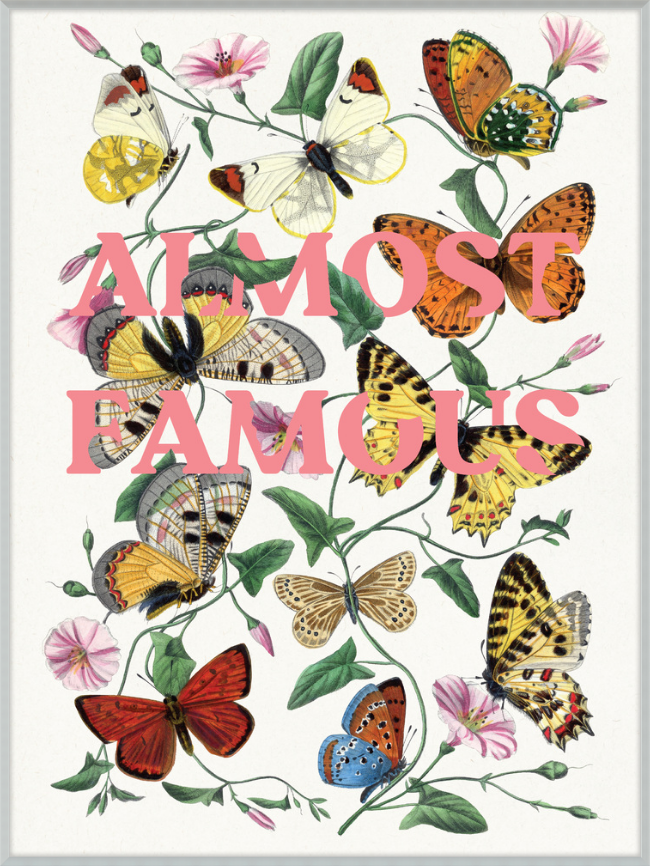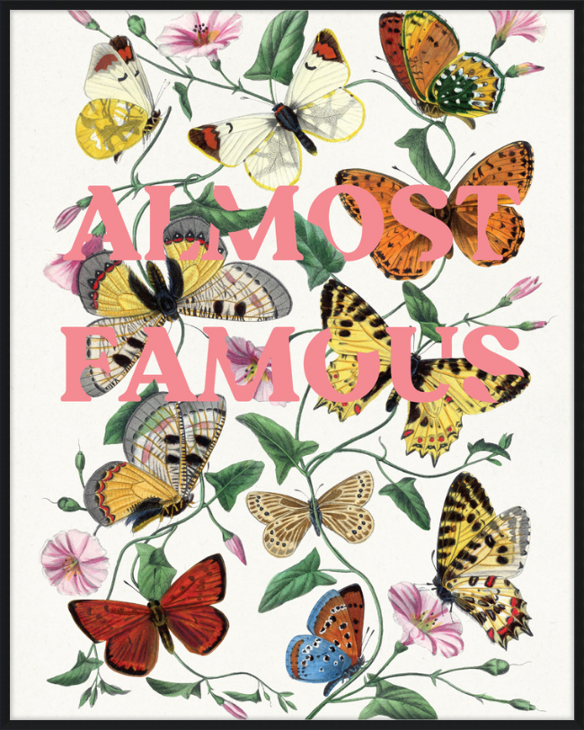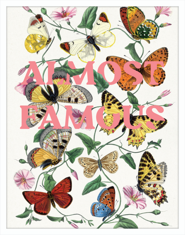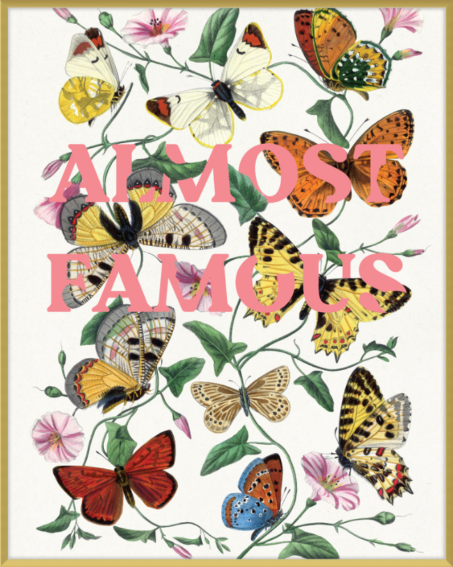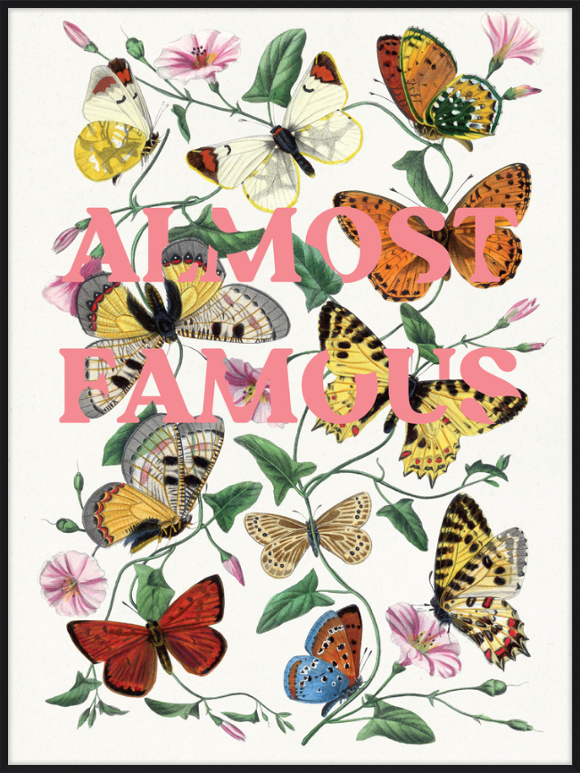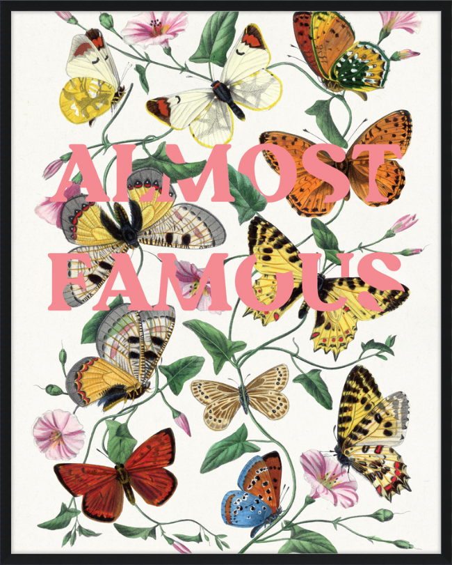 "Almost Famous" is a beautiful and fun combination of classical beauty with a modern, cheeky edge. This vintage Butterfly & Moth print from an 1842 edition of Le Jardin Des Plantes by Paul Gervais is the perfect contrast with a modern typography in a bold rose color palette. Not sure if your space is classic or modern? No need to think any about it any longer - this piece will cover all your bases.